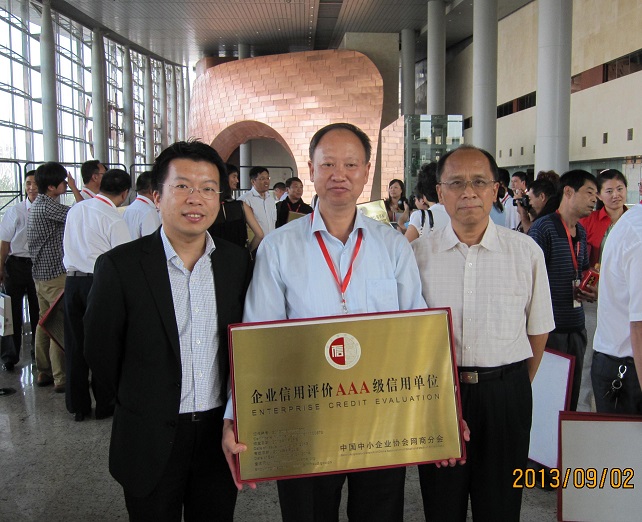 董事長廖世明先生參加在北京國家會議中心、我司被授予“3A級網商信用企業”的榮譽稱號,并得到了中國中小企業協會信用管理中心領導的高度評價和贊許。